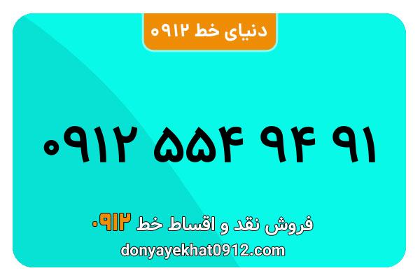 سیمکارت 0912 کد پنج کارکرده معمولی به شماره 09125549491