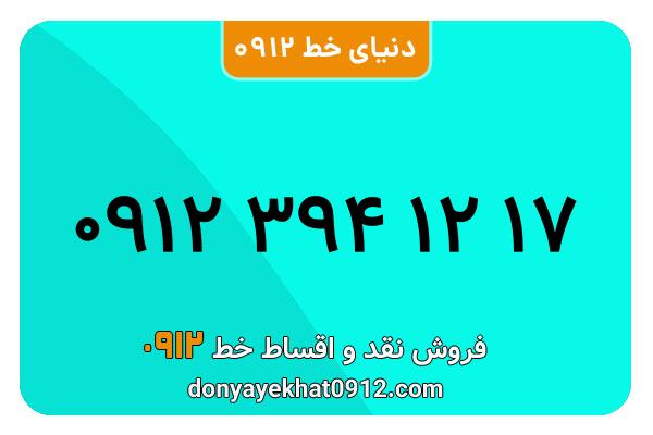 سیمکارت 0912 کد سه کارکرده معمولی به شماره 09123941217
