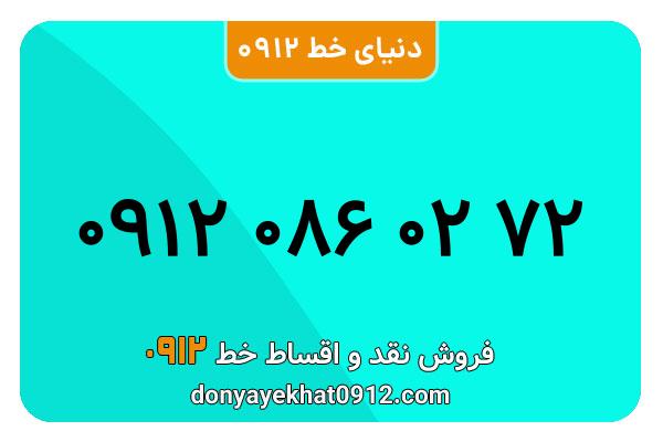 سیم کارت 0912 کد صفر کارکرده معمولی به شماره 72 02 086 0912